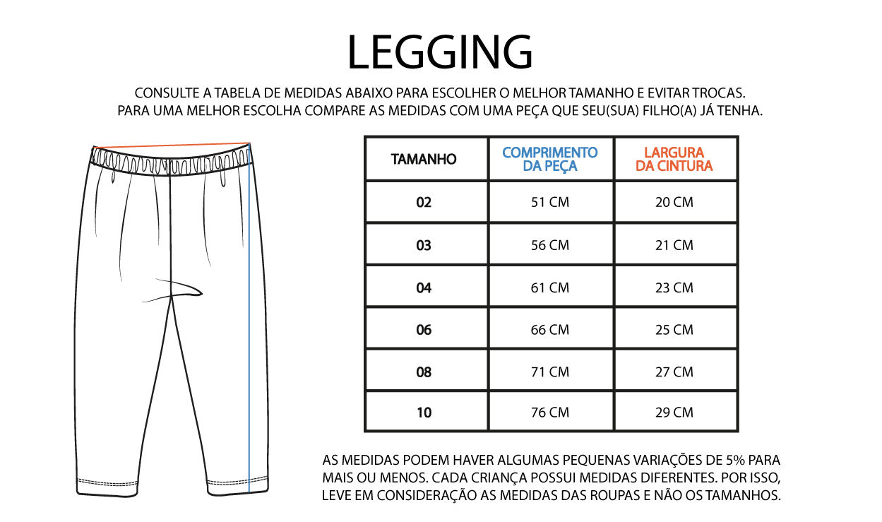 Legging é a peça ideal para a criança brincar com conforto e estilo. Ela possui modelagem exclusiva, sem costura lateral, com reforço na costura entre as pernas e com elástico macio na cintura. É confeccionada de malha cotton, um tecido macio o confortável com 96% algodão sustentável certificado e 4% elastano LYCRA original. Além disso, por ser uma malha leve, é fácil de lavar, secar e praticamente não amassa. Essa peça é coringa para usar o ano todo: no inverno pode ser usada por baixo de calças e vestidos, e no verão é ótima em dias ou noites mais fresquinhas. Sua estampa é exclusiva e original da Meu & Minha, ou seja, pode ser lavada inúmeras vezes que jamais irá desbotar ou criar bolinhas. Combine com camisetas, regatas, blusas, vestidos e jaquetas com a mesma estampa para criar um look moderno ou opções lisas para "quebrar" um pouco o estampado